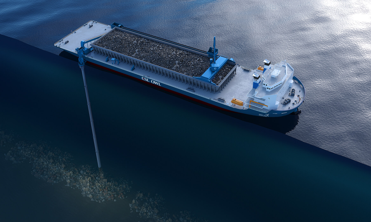 该系列抛石船主要用于将沙子、石块等颗粒倾倒到湖泊或海洋底部,可在水深达100米的水域提供高效、经济的抛石服务,中船赛思亿为其提供动力系统总集成。